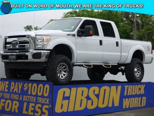 WWW.GIBSONTRUCKWORLD.COM*2013 Ford F250 XLT Crew Cab 6 Inch Lifted Monster 4X4* Carfax 1 Owner Under Full Factory Warranty, good thru 4/11/16 or 36k miles. Also comes with powertrain warranty, good thru 4/11/18 or 60k miles. Do not make a $3K+ mistake, B4 you buy a used truck demand to see shop bills & have the truck inspected by a 3rd party! Riding high on $6,000 of 6 inch Rough Country lift kit with 37 inch tires and American Racing wheels, $395 Sync, CD/mp3 player, steering wheel controls, tilt steering, cruise control, nerf bars, keyless entry with alarm, towing package, bed liner, power windows, power mirrors, power door locksSTILL UNDER FACTORY WARRANTY, Gibson Truck World*Repair Description: Total Invested = $1,519.50*10 Mile Road Test, 135 Point Inspection, Lube, Oil & Filter, Replaced Air Filter & Wiper Blades, Serviced Transfer Case, Changed Fluid, Replaced 3rd Brake, Hood Light Bulb & Tag Lens, Installed Kick Plates, Tailgate Cap, Installed LeatherBattery Condition Test : Good, Alternator Condition Test : Good*Labor time quoted by All Data Universal ShopKey* Gibson Truck World in Sanford, FL has the lowest price for used trucks period! Gibson specializes in pre-owned Ford trucks, Dodge trucks, Chevrolet trucks, GMC trucks, Jeeps and SUVs. Gibson Truck World sells, ships trucks across the country & worldwide. We have a large selection of F150, F250, F350, F450, F550, RAM 3500, 2500, 1500 Chevy or GM 3500, 2500, 1500 quality pre-owned pickup trucks.