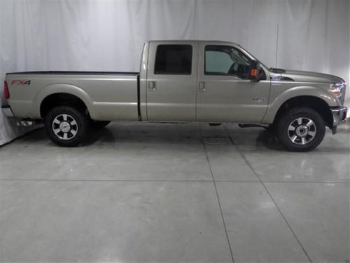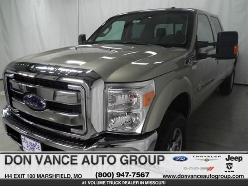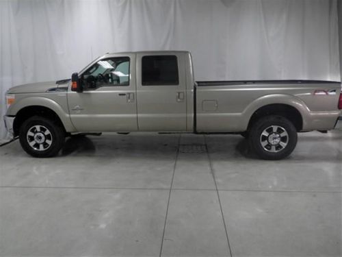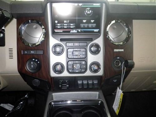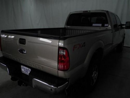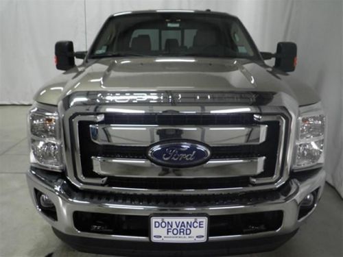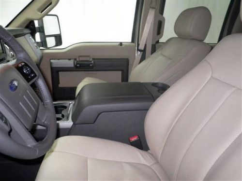 Fog lamps, tow hooks, 18 inch aluminum black painted wheels, reverse sensing system, rearview camera, chrome front and rear bumper, and a rear trailer hitch. 4DR. 4WD. Engine is a 6.7L V8 Diesel with an automatic 6-speed transmission. Exterior paint color is Pale Adobe Metallic. Interior contains premium Adobe leather heated/cooled seating. Power windows, locks, and mirrors included. A few additional features include: Premium audio, keyless entry pad, My Ford SYNC, tailgate step, trailer brake controller, Sirius XM, remote start, power fold mirrors, and on-wheel cruise controls.