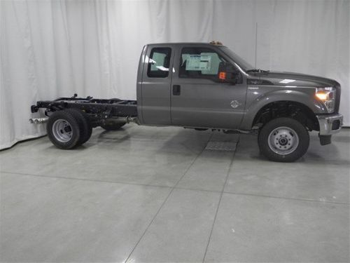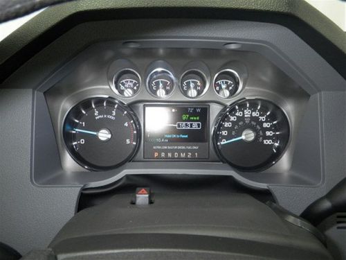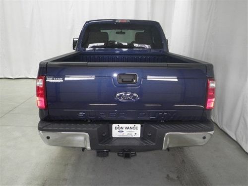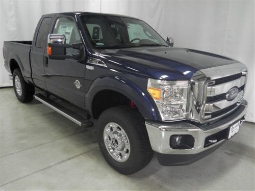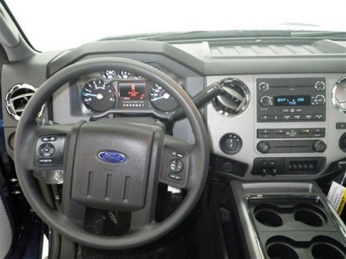 Fog lamps, tow hooks, 18 inch chrome clad wheels, reverse sensing system, chrome front and rear bumper, side step running boards, and a rear trailer hitch. 4DR. 4WD. Engine is a 6.7L V8 Power Stroke Diesel with an automatic 6-speed transmission. Exterior paint color is Blue Jeans Metallic. Interior contains premium Steel Gray leather seating. Power windows, locks, and mirrors included. A few additional features include: My Ford SYNC, tailgate step, trailer brake controller, Sirius XM, power fold mirrors, and on-wheel cruise controls.