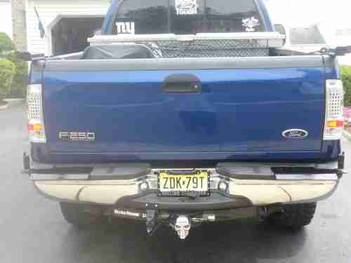 Don't know where to begin. Your looking at a 1999 ford F250 SUPERDUTY 4x4. Has a 5.4 powerplant with hypertechs download. Exhaust work includes 3 inch pipe into flowmaster mufflers. Suspension has all been worked with 4 inch superlift kit and airbags in all 4 corners with manual adjustments. This SUPERDUTY has nitto mud terrains on black mamba moto rims (35x12.50 17) more than 75% tire life. It has a class 4 hitch with drop down 4 inch bar. Stereo system is a pioneer cd/dvd/mini/sirus/xm head unit with pioneer speakers all around. Truck has always had full syn mobil 1 since I've owned it. All fluids have been changed, including transfer case and both axles. The truck is set up for a snowplow and salter package which I have but is Optional if buyer wants it. I've used both 4 times since buying them. The plow is a top of the line blizzard that fully adjusts to 8ft to 12 ft . I also have matching salter unit that hangs off back of truck. Truck is a non smoker vehicle. Truck was not abused in anyway. I just put brand new shocks and boots all the way around. Along with a BRAND NEW transmission from ford with a transferable warranty till 100,000 miles. It cost me $4000 for the unit. Wanted the best that I could get...She also came with oversize trans cooler with all new lines. Bedliner has plastic insert with no visible damage. Also has BRAND NEW front headlights w/LED'S plus HELLA driving lights 150 watts! BRANDNEW rear tail lights. More jewelry than I ever bought my wife! I changed with last tune-up IGNITION POWER PACKS and WIRES.
