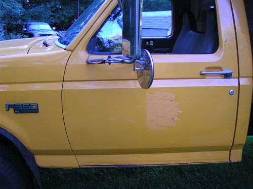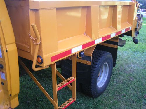 This dump truck was a D.O.T. vehicle, so it was very well maintained mechanically. It has the dependable 7.3L powerstroke diesel with only 104,000 miles, 5speed manual transmission, and it runs and drives great. It was just inspected and is good until 9/2014. It has 2 fuel tanks. A brand new metal side tank, and a plastic rear tank. It is very basic as far as options. It is not equipped with A/C or cruise control, and has just an am/fm radio. Heat works great. It has heated side view mirrors and self leveling beacon lights on top. It also has a engine coolant block heater. It also has a 7 pin trailer plug and receiver.