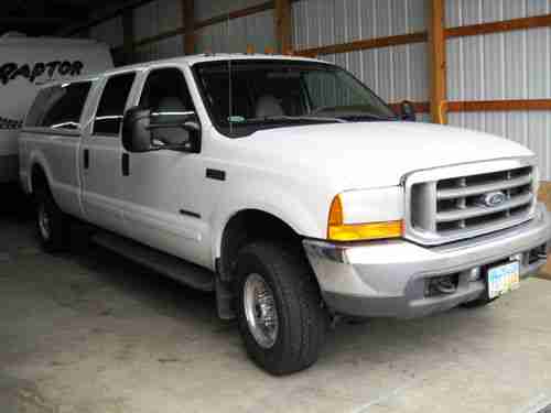2001 Ford F350 4X4, automatic transmission, 7.3L diesel, 4 door crew cab, long bed with matching cap. The truck runs great with no issues, everything works as it should. It includes a tow package and a fifth wheel hitch and brake controller. The interior is leather with power everything. The truck is in excellent running condition. The exterior has very minor rust on the bed over the wheel wells. Tires still have great tred. Truck has a matching Century fiberglass cap. Over $2000 in maintenance was spent on this truck in 2012 to ensure everything was working properly. It has a low 144,250 miles on it. This is a very nice truck.