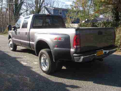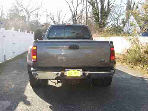 Up for sale i have a nice 2003 ford f350 4x4 6.0 diesel crew cab dually lariat with 179,000 miles. This truck is fully loaded all the option except for a sun roof. Power windows , power door locks, cruise controll , power seats , leather seats , tow package , has fith wheel ball in the bed, power mirrors , power adjustable peddals , rear slidding window , bed liner , 4 wheel drive , Fx4 off road package ,back up sensors, over head consol with message center that tells you mpg, outside temp, how many miles until fuel tank is empty. you name it this truck has it. Everything on the truck works great. The transmition was done about 30,000 miles ago. This truck runs and drives like new, You would never know that it has the millage that it has. Mecanicaly this truck is 100 percent. The interior is in great shape for the age. As you can see in my photos there is normal wear on the bottom of the fron drivers seat and a little on the passanger seat. every thing else is in great shape. If you recovered the bottoms of the seats the interior would be mint. You can buy the leather seat covers on ebay for $200 very easy to replace. The exterior looks nice. This truck is 100 percent rust free . The body the under carage the frame break lines everything is comletley rust free. The cab of the truck on the out side is in great shape with the usual minor scratches from rubbing on bushes that will buff right out. Nothing major. There is a dent on the fender above the front passanger tire also in my pics. The front bumper is dented on both sides again you can buy one on ebay for $200 and its just a few bolts. The bed of the truck has some normal light scratches that will also buff right out. The tail gate was replaced by a profetional body shop and looks mint. as you can see in my pics above the left tail light has a dent. The rear passanger fender flare is cracked at the bottom and it has one deep scratch on it. I got a price to replace it at the body shop for $1,000 if you want to replace it to make the truck look mint. This truck is beutiful but is not at all a show truck. If i had to rate it compared to simmilar trucks that where in mint condition i would say 8 out of 10. Has no leaks what so ever. I would be intersted in a trade for a motorcycle , rv, or a boat . but please no junk this is a great truck. Please email me with any trade you might have. This is being sold as is with no gaurantes. I will ship any where in the U.S but buyer is to set up shipping. Please do not bid if you live outside the U.S Please check my feed back and bid with comfadince. My reserve is set way way lower then what other people are for this truck on ebay. Thanks Tony