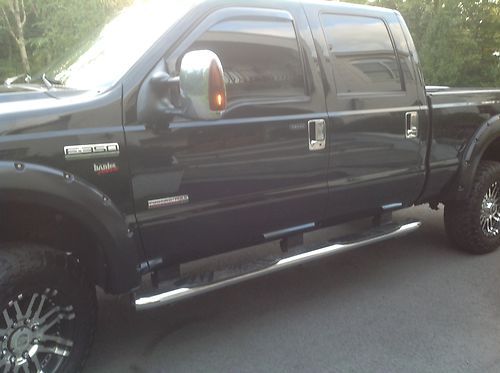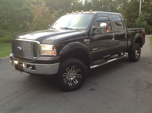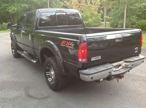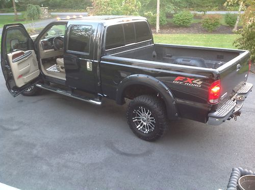 Hello, you are bidding on a beautiful 2007 Ford f-350 4x4 lariat fx-4 super duty 4-door. This truck has miles on it but was well cared for! The interior & exterior on this truck is in excellent condition! The xtra clean black exterior is in great shape no dents scratches or rot there are a couple small spots size of dimes that have been touched up from everyday normal use.Please view pictures thay are worth a thousand words! There are lots of chrome xtra's on this truck to start with the bumpers are chrome( very minor dent front right corner size of softball pictured) front tow hooks,door handles covers,grill,mirrors,Also this truck really stands out and turns heads every where it goes with it's custom rims& tires that are like new condition (pictured) to complete the exterior look there are custom wheel molding flares that look great! also smoked window rain guards & bed liner. Some other features are factory tow package,power sunroof,power rear sliding window&navigation(alpine after market navigation),The turbo Diesel engine with it's Bank Power booster adds tons of power to it's already very powerfully engine! The tan leather interior is in great shape also no rips or tears(arm rest very minor tear) with a glass power sunroof ,power rear sliding window,Ice cold a/c,power windows,locks,tilt wheel,wood grain trim and the comforts of having a true 4-door for easy in and out! This truck is truly a joy to drive it goes down the road as it should no shakes everything works as it should. Please keep in mind you are bidding on a used truck we do our best to describe best we can ,you are welcome to view or test drive before bidding we are located at: The Car Lot Inc. 441 Dyer Ave Cranston R.I.02920 our phone #'s are 401-946-1330 or 401-639-2655 please ask for Rob. Take a minute and look at our feedback it is 100% it says it all. What you bid is what you pay... No doc fee's. ( if you are a state that requires sales tax to be paid sales taxes will have to be paid at time of sale) truck may have a few more miles on truck at time of sale! Truck is such a pleasure to drive owner is driving daily!