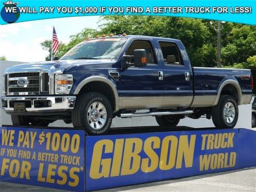 WWW.GIBSONTRUCKWORLD.COM*2008 Ford F350 Lariat Crew Cab Long Bed Powerstroke Diesel 4X4* with 1 year REAL FREE BUMPER TO BUMPER WARRANTY honored anywhere in the United States with our exclusive 15 DAY RETURN/EXCHANGE POLICY! That is how confident we are in our trucks! Do not make a $3K+ mistake, B4 you buy a used truck demand to see shop bills & have the truck inspected by a 3rd party! Riding on a nice set of Firestones, $700 chrome nerf bars, $300 6 disc CD/MP3 player, $250 power sliding rear window, $125 upfitter switches, $120 adjustable pedals, dual power heated leather seating with memory, aux line in, wood grain interior trim, tilt steering, cruise control, steering wheel controls, keyless entry, alarm, towing package, power windows, power mirrors and power door locks.*Gibson is the only dealer that gives a REAL FREE 12 MONTH BUMPER TO BUMPER WARRANTY VALID ACROSS THE UNITED STATES, 12 MONTHS FREE MAINTENANCE ($1,000 VALUE!) FROM OUR 23 BAY SERVICE DEPARTMENT AND OUR EXCLUSIVE 15 DAY RETURN/EXCHANGE POLICY! It sounds too good to be true, but it is true! We will pay you $1,000 if you find a better truck for less, Gibson Truck World is Nations ahead of the competition! AT GIBSON TRUCK WORLD AN EDUCATED CONSUMER IS OUR BEST CUSTOMER**Repair Description: Total Invested = $1,078.33*10 Mile Road Test, 135 Point Inspection, Lube, Oil & Filter, Replaced Wiper Blades, Balanced & Rotated Tires, Alignment, Installed Bed Liner, Tail Gate Cap, Installed Chrome Door Handles, Tailgate Handle, Chrome Bugshield & BedcapsBattery Condition Test : Good, Alternator Condition Test : Good*Labor time quoted by All Data Universal ShopKey* Gibson Truck World in Sanford, FL has the lowest price for used trucks period! Gibson specializes in pre-owned Ford trucks, Dodge trucks, Chevrolet trucks, GMC trucks, Jeeps and SUVs. Gibson Truck World sells, ships trucks across the country & worldwide. We have a large selection of F150, F250, F350, F450, F550, RAM 3500, 2500, 1500 Chevy or GM 3500, 2500, 1500 quality pre-owned pickup trucks.
