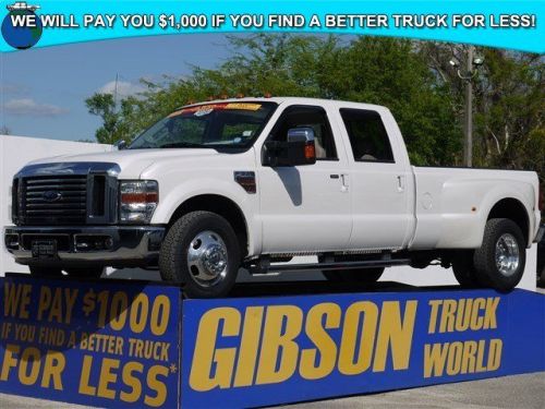 WWW.GIBSONTRUCKWORLD.COM*2010 Ford F350 Lariat Crew Cab Dually Powerstroke Diesel* Carfax 1 Owner with diesel engine warranty, good thru 4/8/15 or 100k miles, 1 year REAL FREE BUMPER TO BUMPER WARRANTY honored anywhere in the United States with our exclusive 15 DAY RETURN/EXCHANGE POLICY! That is how confident we are in our trucks! Do not make a $3K+ mistake, B4 you buy a used truck demand to see shop bills & have the truck inspected by a 3rd party! Demand to see the IDS test results on all 6.0L and 6.4L engines! Riding on a nice set of BFGs, $1,875 navigation system, $1,000 power sliding moonroof, $470 backup camera & sensors, $395 Sync, $375 tailgate ladder, $300 chrome tow hooks, $250 power sliding rear window, $120 adjustable pedals, $85 upfitter switches, dual power heated leather seating with memory, woodgrain interior trim, CD player, steering wheel controls, nerf bars, tilt steering, cruise control, towing package, power windows, power mirrors, power door locks*Gibson is the only dealer that gives a REAL FREE 12 MONTH BUMPER TO BUMPER WARRANTY VALID ACROSS THE UNITED STATES, 12 MONTHS FREE MAINTENANCE ($1,000 VALUE!) FROM OUR 23 BAY SERVICE DEPARTMENT AND OUR EXCLUSIVE 15 DAY RETURN/EXCHANGE POLICY! It sounds too good to be true, but it is true! We will pay you $1,000 if you find a better truck for less, Gibson Truck World is Nations ahead of the competition! AT GIBSON TRUCK WORLD AN EDUCATED CONSUMER IS OUR BEST CUSTOMER**Repair Description: Total Invested = $1,956.18*10 Mile Road Test, 135 Point Inspection, Lube, Oil & Filter, Alignment, Mount 1 NEw & Balanced 6 Tires, Alignment, Replaced Rear Pads, Rotors & Axle Seals, Replaced Upper & Lower Radiator Hose, Replaced Coolant Reservoir & Refill Coolant, Performed IDS Test, Replaced Air Filter & Wiper Blades, Serviced Transmission, Replaced Fluid, Serviced Rear Differential, Replaced 3rd Brake Light Bulb, Replaced Both Washer Jets, Installed Bed Liner, Replaced Water in Fuel Sensor & Fuel FilterBattery Condition Test : Good, Alternator Condition Test : Good*Labor time quoted by All Data Universal ShopKey* Gibson Truck World in Sanford, FL has the lowest price for used trucks period! Gibson specializes in pre-owned Ford trucks, Dodge trucks, Chevrolet trucks, GMC trucks, Jeeps and SUVs. Gibson Truck World sells, ships trucks across the country & worldwide. We have a large selection of F150, F250, F350, F450, F550, RAM 3500, 2500, 1500 Chevy or GM 3500, 2500, 1500 quality pre-owned pickup trucks.