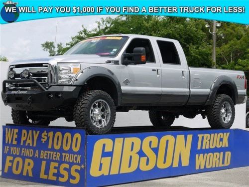 WWW.GIBSONTRUCKWORLD.COM*2012 Ford F350 Lariat Crew Cab Long Bed Powerstroke Diesel 6 Inch Lifted Monster 4X4* Carfax 1 Owner 1 year REAL FREE BUMPER TO BUMPER WARRANTY honored anywhere in the United States with our exclusive 15 DAY RETURN/EXCHANGE POLICY! That is how confident we are in our trucks! Do not make a $3K+ mistake, B4 you buy a used truck demand to see shop bills & have the truck inspected by a 3rd party! Riding high on $5,500 of 6 inch lift kit with 35 inch Toyos and 20 inch Fuel wheels, $610 fender flares, $500 spray bed liner, $470 backup camera & sensors, $400 Pioneer CD player, $395 Sync, $250 power sliding rear window, $120 adjustable pedals, $85 upfitter switches, power heated/cooled leather seating with memory, woodgrain interior trim, steering wheel controls, tilt steering, cruise control, keyless entry with alarm, towing package, power windows, power mirrors, power door locks*Gibson is the only dealer that gives a REAL FREE 12 MONTH BUMPER TO BUMPER WARRANTY VALID ACROSS THE UNITED STATES, 12 MONTHS FREE MAINTENANCE ($1,000 VALUE!) FROM OUR 23 BAY SERVICE DEPARTMENT AND OUR EXCLUSIVE 15 DAY RETURN/EXCHANGE POLICY! It sounds too good to be true, but it is true! We will pay you $1,000 if you find a better truck for less, Gibson Truck World is Nations ahead of the competition! AT GIBSON TRUCK WORLD AN EDUCATED CONSUMER IS OUR BEST CUSTOMER**Repair Description: Total Invested = $3,843.19*10 Mile Road Test, 135 Point Inspection, Lube, Oil & Filter, Mount & Balanced 4 New 35x12.50R20 Toyo Open Country M/T Tires, Alignment, Replaced Ball Joint, Replaced Front and Rear Brake Pads, Turned Rear Rotors, Replaced Rear Axle Seals, Replaced Front Stabilizer Shocks, Replaced Battery, Repalced Wiper Blades, Replaced 3rd Brake Light Bulb, Serviced Transfer Case Changed Fluid, Replaced All Fog/Lamp Bulbs.Battery Condition Test : Good, Alternator Condition Test : GoodLabor time quoted by All Data Universal ShopKey Gibson Truck World in Sanford, FL has the lowest price for used trucks period! Gibson specializes in pre-owned Ford trucks, Dodge trucks, Chevrolet trucks, GMC trucks, Jeeps and SUVs. Gibson Truck World sells, ships trucks across the country & worldwide. We have a large selection of F150, F250, F350, F450, F550, RAM 3500, 2500, 1500 Chevy or GM 3500, 2500, 1500 quality pre-owned pickup trucks.