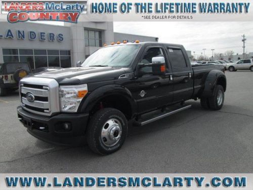 Thank you for visiting another one of Landers McLarty Autoplex Bentonville's online listings! Please continue for more information on this 2014 Ford Super Duty F-350 DRW Platinum with 0 miles. When Ford created this Super Duty F-350 DRW Platinum with 4 wheel drive, they immediately enhanced the performance ability. Easily switch between two and four wheel drive to take advantage of the improved steering and superior acceleration. The look is unmistakably Ford, the smooth contours and cutting-edge technology of this Super Duty F-350 DRW Platinum will definitely turn heads. Based on the superb condition of this vehicle, along with the options and color, this Super Duty F-350 DRW Platinum is sure to sell fast. More information about the 2014 Ford Super Duty F-350 DRW: The F-Series Super Duty trucks bear a resemblance to the ubiquitous, best-selling F-150 pickups. These Super Duty models are made to serve an especially pure purpose -- to reliably, safely and confidently haul heavy loads or heavy trailers day after day. Best of all, these workhorses are actually quite comfortable -- even luxurious in some cases-- inside. Ford boasts that their PowerStroke diesel engine is the most powerful diesel pickup engine on the market and that the Super Duty F-350 (dual rear wheel) model has a best-in-class payload (7,110 pounds) and fifth-wheel tow rating (22,700), as well as a best-in-class conventional tow rating of 17,500 pounds. Strengths of this model include Flexibility for commercial use, tougher than standard full-size trucks, class-leading tow ratings, Power Stroke diesel's 800 pound-feet of torque, and full roster of safety features We are a community based dealership, we have been in business for almost 40 years and not going anywhere. We are about building a relationship with our customers, you'll appreciate the way we do business. You can buy a car anywhere but no one can give you the value that we can. ASK FOR GERALD BROWN FOR ALL INTERNET SPECIALS!
