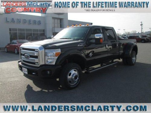 This 2014 Ford Super Duty F-350 DRW Platinum is offered exclusively by Landers McLarty Autoplex Bentonville This 4WD-equipped Ford will handle majestically on any terrain and in any weather condition your may find yourself in. The benefits of driving an Four Wheel Drive vehicle, such as this Super Duty F-350 DRW Platinum, include superior acceleration, improved steering, and increased traction and stability. You can finally stop searching... You've found the one you've been looking for. The look is unmistakably Ford, the smooth contours and cutting-edge technology of this Super Duty F-350 DRW Platinum will definitely turn heads. More information about the 2014 Ford Super Duty F-350 DRW: The F-Series Super Duty trucks bear a resemblance to the ubiquitous, best-selling F-150 pickups. These Super Duty models are made to serve an especially pure purpose -- to reliably, safely and confidently haul heavy loads or heavy trailers day after day. Best of all, these workhorses are actually quite comfortable -- even luxurious in some cases-- inside. Ford boasts that their PowerStroke diesel engine is the most powerful diesel pickup engine on the market and that the Super Duty F-350 (dual rear wheel) model has a best-in-class payload (7,110 pounds) and fifth-wheel tow rating (22,700), as well as a best-in-class conventional tow rating of 17,500 pounds. Strengths of this model include Flexibility for commercial use, tougher than standard full-size trucks, class-leading tow ratings, Power Stroke diesel's 800 pound-feet of torque, and full roster of safety features We are a community based dealership, we have been in business for almost 40 years and not going anywhere. We are about building a relationship with our customers, you'll appreciate the way we do business. You can buy a car anywhere but no one can give you the value that we can. ASK FOR GERALD BROWN FOR ALL INTERNET SPECIALS!