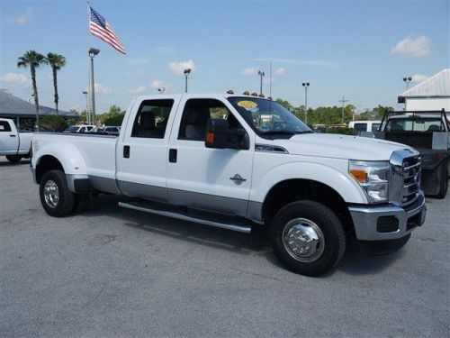 WWW.GIBSONTRUCKWORLD.COM*2014 Ford F350 XLT Leather Crew Cab Dually Powerstroke Diesel 4X4 *Carfax 1 Owner Under full factory warranty, good thru 9/4/16 or 36k miles. Also comes with powertrain warranty, good thru 9/4/18 or 60k miles and diesel engine warranty, good thru 9/4/18 or 100k miles. Do not make a $3K+ mistake, B4 you buy a used truck demand to see shop bills & have the truck inspected by a 3rd party! Riding on a nice set of Generals, $395 Sync, leather seating, nerf bars, CD player, steering wheel controls, tilt steering, cruise control, keyless entry with alarm, towing package, bed liner, power windows, power mirrors, power door locksSTILL UNDER FACTORY WARRANTY, Gibson Truck World*Repair Description: Total Invested = $994.48*10 Mile Road Test, 135 Point Inspection, Lube, Oil & Filter, Replaced Rear Pads, Turned Rotors, Replaced Axle Seals, Replaced Air Filter & Wiper Blades, Alignment, Installed Bedcaps, Installed Tail Gate Cap, Installed Kick PlatesBattery Condition Test : Good, Alternator Condition Test : Good*Labor time quoted by All Data Universal ShopKey* Gibson Truck World in Sanford, FL has the lowest price for used trucks period! Gibson specializes in pre-owned Ford trucks, Dodge trucks, Chevrolet trucks, GMC trucks, Jeeps and SUVs. Gibson Truck World sells, ships trucks across the country & worldwide. We have a large selection of F150, F250, F350, F450, F550, RAM 3500, 2500, 1500 Chevy or GM 3500, 2500, 1500 quality pre-owned pickup trucks.
