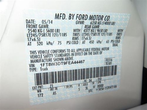 VIN (Vehicle Identification Number): 1FT8W3DT9FEA44467