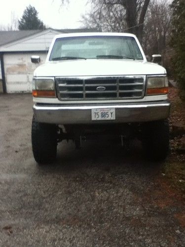 This is a clean 96 F-350 it runs great 6" lift kit 36"tires,tool box some scrathes dual exhaust new brakes 411 gears dana 60 front axle.Also have a Unimount plow that is for sale for 1500.00 complete,8ft.with wings,and has been completely rebuilt,all in good order.Also have a lot of trk. parts for sale call 847-553-5651.or send msg.