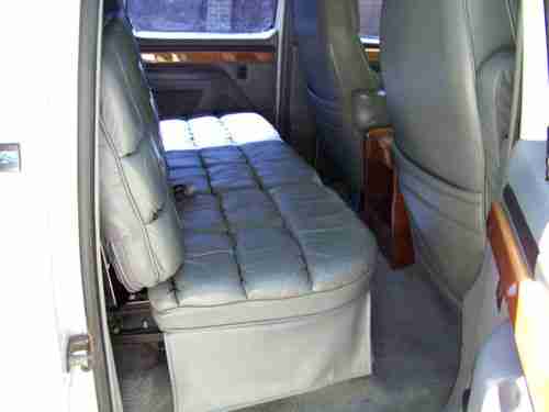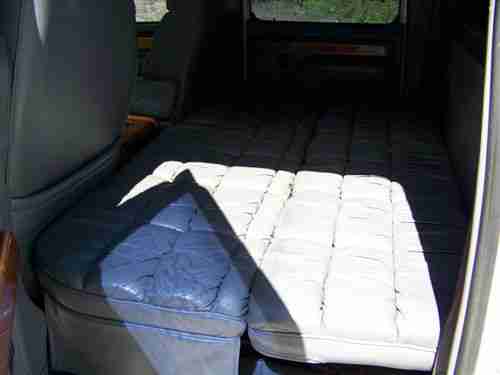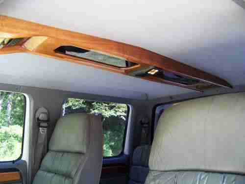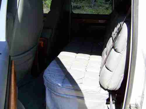 INTERIOR: LEATHER SEATS AND CARPET ARE IN GOOD CONDITION OTHER THAN DRIVERS SEAT CORNER, IT IS TORN AS PICTURED. TINTED WINDOWS ALL THE WAY AROUND. REAR POWER FOLDING SEAT FOLDS DOWN INTO A BED. WOOD ACCENTS THROUGHOUT THE TRUCK. WOOD CENTER CONSOL CLEAR COAT IS PEELING OFF IN A FEW PLACES.