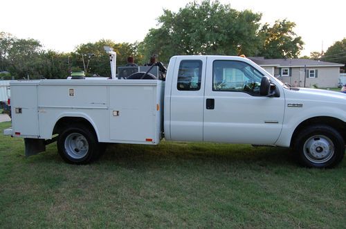 Up for sale is this 2006 F350 6.0 power stroke diesel, 2WD extended cab dully pickup truck with utility bed. This was my service truck and when my company retired it they sold it to me. It was a fleet vehicle and all the scheduled maintenances were done. These vehicles had GPS tracking tattle tale systems that monitored speed limit, braking, acceleration and aggressive driving. Too many violations and you were fired so the truck has been driven well and not abused. The picture has a compressor in the back of the bed but IT IS NOT INCLUDED with the truck. Just installed 2 BRAND NEW Optima Blue Top batteries so you will be ready to go for a long time. Utility bed is set up for a crane. Truck was used daily for a mechanic truck so there are minor dents and scratches (Pictured). Some of the tool box latches need repair but that's an easy fix. Truck is sold as is. If you need the vehicle shipped you are responsible for all shipping costs above the selling price of the vehicle. I will accept Paypal, cash or money order...no personal checks. This is a great vehicle, runs like a top, A/C is freezing cold, tires are in great shape and replaced 20k ago. It will make you a great service vehicle. *************NO RESERVE************* Happy bidding!