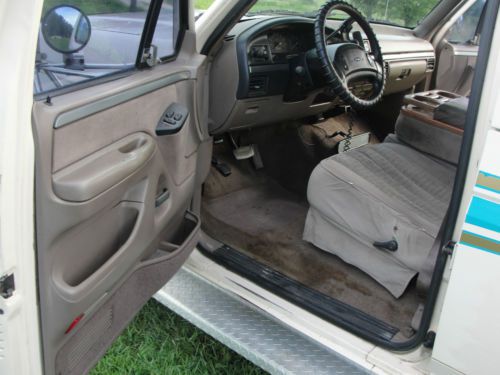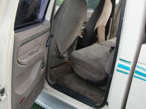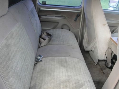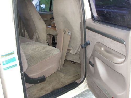 Here is a nice truck for the model, as you can tell by looking at the pictures of interior of truck, I bought this truck 18 months ago for my son to pull his race car with,truck was not running when i bought it,shortly after buying truck my son bought 2000 ford dually.So the truck sat until last month , i replaced the engine out of a church van it had 112,000 miles on it. it runs and drives out great has no leaks anywhere..,it has a new ford transmission and convertor that had been installed by ford dealer in fritzegerald Georgia where the previous owner lived .The interior is nice, it does have a couple holes in the seats from someone smoking in truck, the a/c has not been gassed up since putting in engine, tires are 70% tread, truck has never had a ball put in the bed, it does have a brake box on it, truck runs out as good as my 2003 ford f350.NOTICE! when i bought the truck the owner filled out 149,501 miles on truck on back of title.the front of title shows 334000 miles, sometimes the truck shows in the 150,000 range sometimes it will not show anything at all, today when i turned on the key to get mileage it showed 312,000 on miles. IT WILL BE SOLD WITH THE MILAGE DOING THESE THINGS REGUARDLERSS OF WHAT IT SHOWS WHEN YOU PICK UP TRUCK! the previous owner bought truck in 2007 for the orgional owner that bought the truck new.the guy i bought the truck from said the mileage did not start acting up just before engine torn up.we have driven the truck around 750 miles.I reserve the right to end auction at any time. must be paid for 3 day from auction ending.I could not get the hood open, my husband drives over the road and will be home tomorrow night and i will post engine pictures then.I drive over the road, not around computer hardly any at all during the week, if you need questions answered you make call me at 270-893-5384