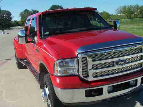 Low mileage, fully loaded,2005 Ford Lariat diesel dually. 4 door crew cab with 8' bed. This truck has been pampered ,and is super clean. Many options make this truck the perfect tow vehicle.It has a B&W 30,000# turnover goose neck hitch, a class III receiver hitch, factory ,plus Tekonsha electric brake system, a Firestone adjustable air ride system.( Also have a B&W Companion 5th wheel hitch available.)