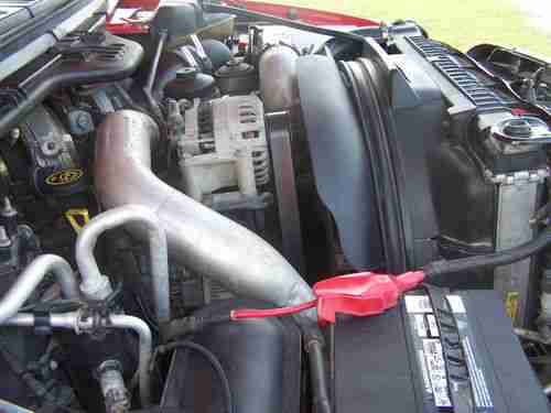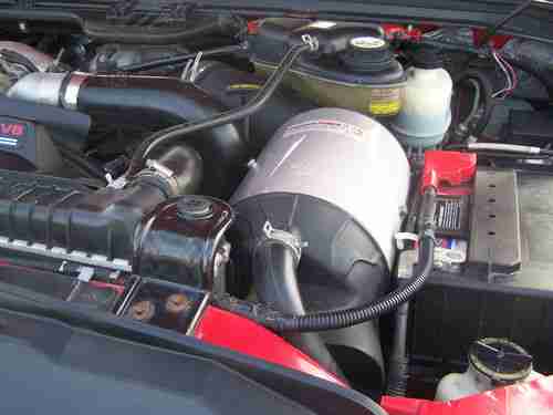 Exterior brilliant red, color matching sun visor, stainless bed and tailgate caps, stainless (full) running boards, polished aluminum wheels, chrome grille, bug guard, rain vent shades, door handles,mirrors, Extang trifecta Tonneau cover, rubber bed mat.