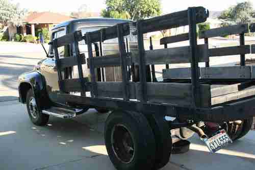 RESERVE LOWERED! Restoration was started 20 years ago. These are recent pictures. 11/15/2012. All Body work on cab is done and any body filler was done with "lead". Then painted gloss black. No Bondo. All new weatherstripping. New glass. Windshield is tinted and shaded. Side and rear glass is tinted, in the glass. Interior is black Naugahyde. With Blue Oval inserts in back and door panels. New door hardware and window regulators. New wiring harness. The engine is the stock replacement. Aluminum Thunderbird Valve covers. Rams horn exhaust manifolds have been metal sprayed. Many engine parts have been chromed. The stake-bed is a "Ford" part. All parts are there. Needs refinishing and the wood work to be completed. Factory Service Manual and Illustrated Parts Catalog included. Delivery can be arranged. I can help with any questions about the truck. I know the complete history. Just call 760-802-8208.