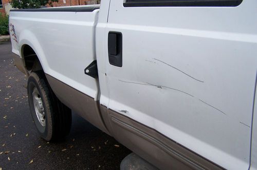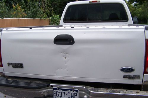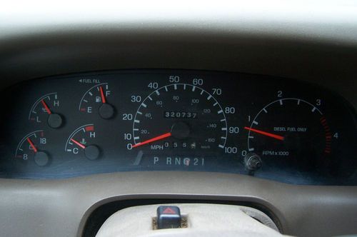 Brief Description. As mentioned, the truck runs awesome! It fires up immediately on the first glow plug cycle! It idles smooth hot or cold and all injectors are firing correctly. It will pass any emissions test, the exhaust is clear. No Diesel or oil leaks underneath. The body is in average condition. The passenger side has 2 areas that could use attention if you want it looking awesome. (R.R. door and bed). As mentioned, It has scratches, dings, dents, etc... Please refer to the pictures. I see no evidence of any sheet metal / panel, collision damage replacements. There are 24 pictures of this F350 that should illustrate and cover most of the questions or cosmetic issues. The interior looks actually decent. The seats are all in good to very good condition. The Floor has carpet that isn't torn, but could use a detail.. All the gauges seem to be working properly, with the exception of the fuel gauge which is unreliable. The brakes stop excellent like they should. The underside is about as rust free as it gets. Interior wise, the windows roll up and down, and all the door handles work. Power locks try, but don't do much. Radio works good. Horn works, lights all seem to work, heater works, Air conditioning blows ice cold! The tires are at the end of their service. They will get you through this summer driving home, but don't plan to go through winter snow with them. All emissions equipment is in place and un-tampered with. The engine makes lots of power. There are no drips coming from underneath of any fluids. The engine does not smoke any color smoke. There are no unusual noises indicating worn bearings. The turbo spools nicely and makes boost. The transmission shifts through all the gears correctly with no obvious signs of slipping. The transfer case is shifted on the floor manually and goes into 4WD hi and low range as it should. The glass is all good, including the windshield. Overall, this is one great running heavy duty truck that should make the next owner happy. Don't miss out on this, get your bids in early! Since I am only human, there's a good chance that I've missed some small or even large stuff. If there's something specific important to you that hasn't been addressed, please contact me and I'll try and get you an answer. My name is Chris, my cell # is (970)214-0979.
