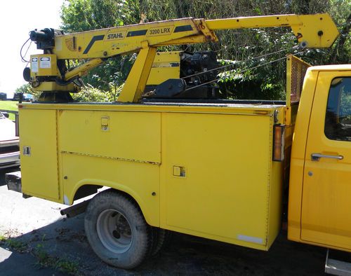 Additionally, the truck comes with a Lincoln Electric Ranger 8 welder and a Stahl 3200 LRX hydraulic crane with electric remote. The welder has 184.8 hours on it.