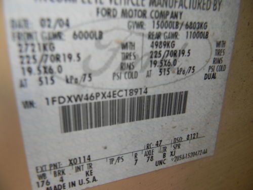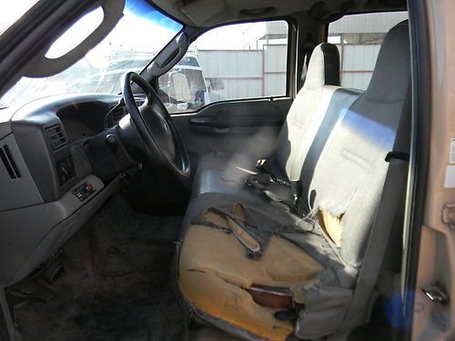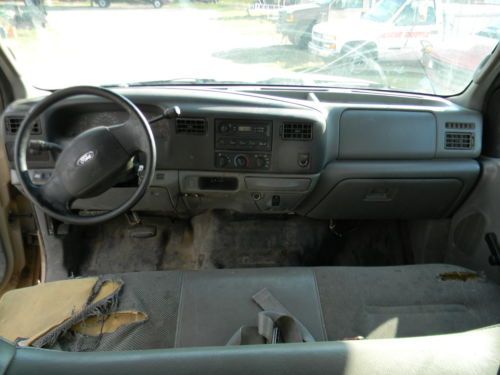 For sale is a 2004 Ford F450 XL crew cab flatbed dump truck that has starting issues. Powered by a 6.0L Powerstroke turbo diesel engine that runs good but has trouble starting. The engine takes 5-10 seconds of cranking before starting up, please call for more detailed description. Truck has 102,608 miles. Automatic transmission, power steering, power brakes, airbag, 15,000 Lb GVWR, 176" wheelbase. Flatbed dump is 9' 6" long, 90" wide, 42" header, wood insert, rub rails with rail pockets. The truck is a XL model with bench seats front and rear, black rubber floorboard and manual windows and locks. The truck not equipped with A/C, AM/FM radio, airbag, pintle hitch. Vinyl benchseats are worn and torn front and back, flatbed operates, front fenders have been painted over and paint job is bad, drivers side rear door handle is broken, front and rear bumpers are dented, truck and flatbed has corrosion, toolbox door is missing, steer tires have 20/10% wear remaining, rear tires have 15/0/70/10% wear remaining. CHECK ENGINE AND ABS LIGHTS ON. This truck is a
