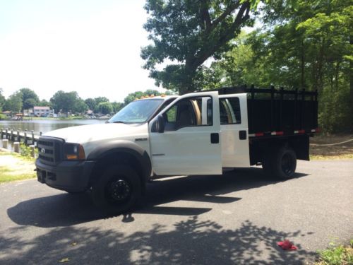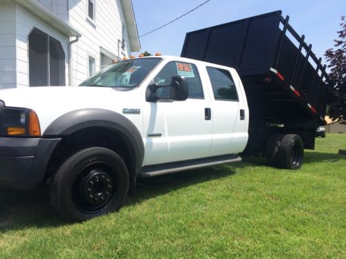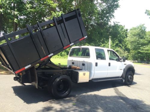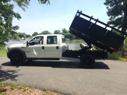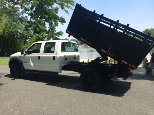 2005 Ford F450 XL Super Crew Flat Bed Dump Truck V8 6.0L Turbo Diesel , 73K miles,Super Duty, Clean Carfax, no accidents, one owner, fleet maintained. New tires, new paint all around, new tool box with keys , new reflector strips all around, removable rear panels, can seat up to 8 and all major components serviced.
