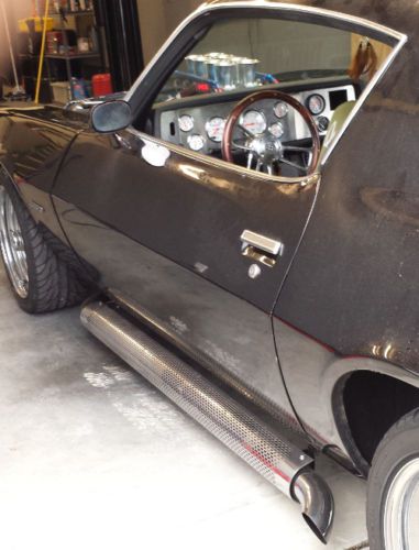 PLEASE READ COMPLETELY BEFORE BIDDING This is a car that is 95% plus complete on the build and restoration. Straight body, interior is new and complete, the engine is all there, just needs the new MSD ignition hooked up to the megasquirt EFI brain (it's in the car and just needs to be wired in) and to be tuned. It has aluminum heads, roller rockers, new cam, and the intake is a tunnel ram custom fitted with 8 procomp EFI injector bodies with velocity stacks controlled by a megasquirt brain (almost $5k just in the custom EFI intake and electronics). The short block had between 3k to 5k miles on it when I bought the car and was told it was a 300hp crate motor. Turbo 350 tranny, newly rebuilt 373 10 bolt rear. New springs, shocks, brakes, brake lines, drums and disks, (everything looks new underneath and inside the car) new tires on 17" SS Cragar wheels, new side pipe exhaust, new stainless steel dash with all new gauges, including toggle EFI fuel pump switch and button start, new billet/wood steering wheel. Paint looks decent but is 10 years old (some scratches and cracks here and there) black with a hint of red metal flake. It does come with a steel hood with I believe a 4" cowl, but will still need to be cut to fit the custom EFI intake and injector unit. I hate to sell this car before it's complete, but I lost my job and I need living expense money. I am not a mechanic either, so I won't be able to answer a lot of the technical questions as I paid to have the work that was done to it. I will try and answer any general questions though. As a note, we did have the engine running (see video) with the EFI and it had a miss/pop or something in it and I was told they thought it was the cheap Chinese ignition we had and it was bugged, so I just spent almost $600 on an MSD package that included the box, coil, distributor and wires and have that on the car now, but it's not yet tied into the EFI brain as I have no clue how. So it has all of the parts installed and ready to run, no need to buy anything else to complete the car mechanically. Oh on the intake, the guy who built this actually builds custom intakes and injector units for all sorts of different cars and his work has been featured in magazines, so it is a quality custom build. The buyer will be responsible for shipping or local pick up in Cocoa Beach, FL. 32931 zip. Low listing price compared to what I have invested in this car as I need to sell it for living expenses. This is a really cool car, especially for the price. Someone is going to be very happy to get a nearly completed project that will be so much fun to drive and a major head turner when done! Good luck and happy bidding. |