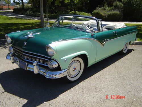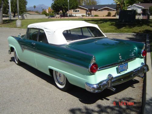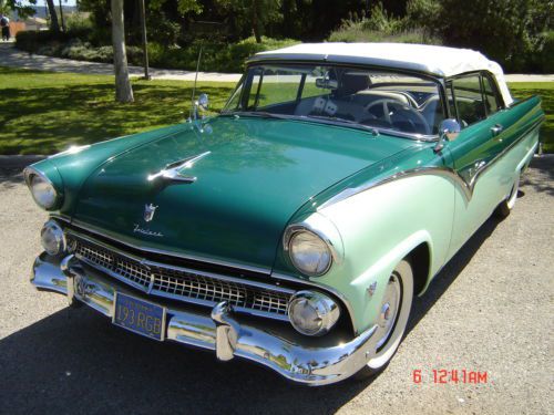 1955 ford fairlane sunline convertible. car is in exellent condition. as good as it gets top to bottom and in side and out, interior is fully restored new carpet and convertible top,all off the chrome is in exellend condition from bumpers and trim,V8 engine, transmission manual, Converted to 12 Volt System,i am not sure if the radio works, the temperature gauge dont work, when the convertible top goes up is slow but is working,PLEASE ASK ALL QUESTIONS BEFORE DIDDING, the vehicle is located in west covina california please feel free to contact me with any questions at 626-833-0128, car is sold as-is with no warranties, winning didder shold contact seller within 24 hours of auction end,buyer is responsible for vehicle picp-up or shipping