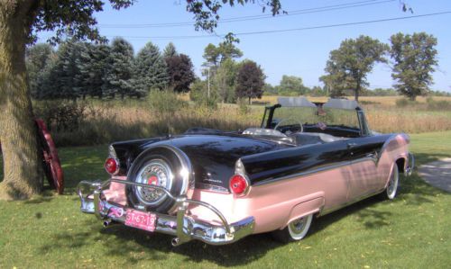 We have owned this car for about 7 years and it seems we have no time for car shows anymore. This car has received many trophies including Ford Dealers Choice and Best of Show. The car has been stored indoors and has never seen rain since we have owned it. The last two years the car has only been driven about 50 miles. The car runs great, handles great, steers great, runs along at speed limits with no problems. The car has minor leaks when it sets for a while, but after driving it regularly it stops dripping. The clock does not work and the fuel gauge works half the time. I have a new sending unit but have not installed it yet, but it will go with the car. The top works slow some of the time. I have described this car to the best of my knowledge. The vehicle is sold in AS IS WHERE IS condition with no guarantee. It is a beautiful car with NO RESERVE. If you want a beautiful 1955 Ford Sunliner this is it! This is the last time it will be listed this year as it will be going into storage. Contact me with questions. Debbie 734-878-5059 Buyer responsible for shipping. I