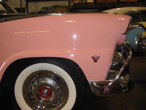 This is a No Reserve beautiful 1955 Sunliner. It has power steering, power brakes, power windows, power seat, power top, rocker moldings, fender skirts, over rider bumper guards ($3,000.00), continental kit, wire wheel covers (not the clip type that tear up your tires), spot light mirror, original 6 volt system, Ford-O-Matic transmission, and dual exhaust. It has wide white walls in like new condition. Interior is in nice condition, carpeting is nice. Chrome is beautiful. No rust.