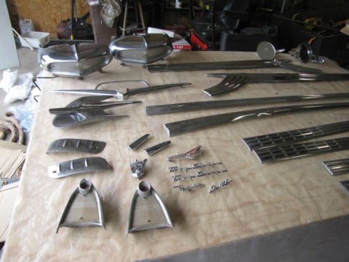Well I know you have heard this story before. A project that had a good start never got finished. Im listing this for my dad. Its a good start to a cool cruiser. Its a 1956 Fairlane sedan. As you can see the original motor and transmission are gone. The 312 had been replaced and the motor was locked up it had a three speed but all that has been gone for a while. He had the car painted Black Cherry and the guy did a pretty good job. Body is straight and I think one piece of chrome is bent where a tree branch had hit the fender. There isnt any rust I can find that isnt surface rust and thats underneath. The interior is original and needs redoing but its very usable. The car has skirts which is always a bonus. It has four brand new 215/75/15 tires and has been in storage since the moment it was painted probably two or more years ago. The tires werent on ground as it has been on jack stands. Throw on a cool set of spinner hubcaps and you are good to go. All the chrome seems to be here and the other Thunderbird emblem not seen is in a bag with door hardware. It has original spare tire and jack along with trunk mat.