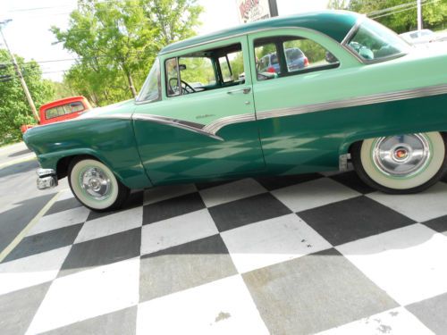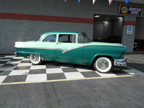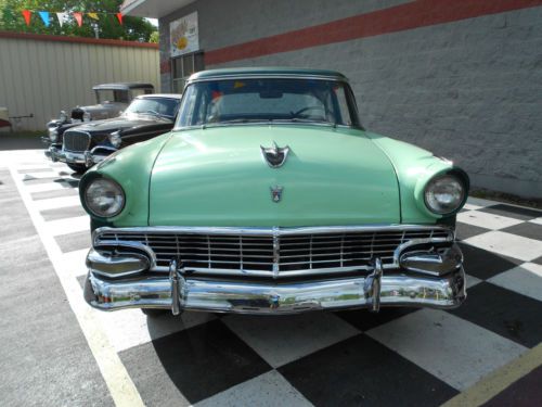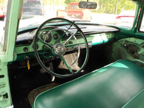 THIS IS A GREAT LITTLE DRIVER 1956 FORD. IT STARTS UP ON A HALF A TURN AND RUNS AND DRIVES OUT GREAT. THE PAINT IS IN DRIVER CONDITION. THE CHROME AND STAINLESS ARE IN VERY GOOD CONDITION. THE INTERIOR IS IN GOOD CONDITION WITH THE EXCEPTION THAT IT NEEDS FRONT DOOR PANELS AND HEADLINER INSTALLED. I HAVE A BRAND NEW HEADLINER STILL IN THE BOX READY TO GO IN. IT IS POWERED BY A 292ci V8 ENGINE THAT WAS COMPLETLY REBUILT ABOUT 4K MILES BACK AND IT IS BACKED UP WITH A AUTOMATIC TRANSMISSION THAT HAS ALSO BEEN GONE THRU. THE FRONT END IS NICE AND TIGHT. GLASS IS IN GOOD CONDITION. JUST A GREAT LITTLE CAR. THIS 56 FORD DRIVES AND HANDLES ABSOLUTLY GREAT. WITH JUST A LITTLE TLC SHE WOULD BE STANDING TALL, BUT IT GETS A LOT OF ATTENTION JUST THE WAY IT IS!!!!!!!