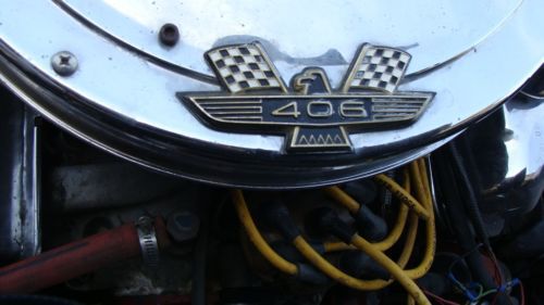 In very good shape for a 56 year old car, certainly presentable but not show condition. A lifetime Idaho desert car, the body has survived very well. It would benefit from a complete detail, as it had been sitting in dry storage for some years before being pulled out & being made roadworthy again. It obviously isn't going to stand up to a close inspection, you would find many imperfections. The overall effect though is favourable, from 10 feet it looks great. The unusual side moulding treatment almost appears to be factory, though most likely is an aftermarket kit of the day. I believe the engine to be a 1962 406 (forerunner to the mighty 427), but can produce no evidence other than the fact that it runs strong. It has power steering & drives well. |