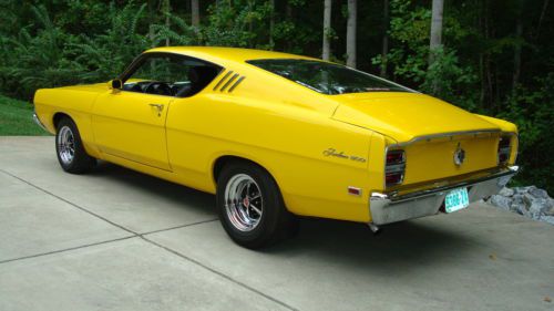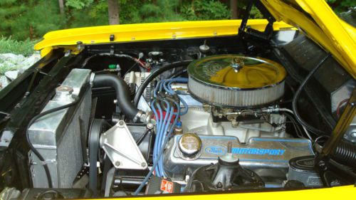 Rust free car from California, original floor and trunk pans. 351 Windsor, GT40 heads, Crane cam, Holley 4-barrel carburetor on an Edelbrock Performer intake manifold, Hooker Super Competition long tube headers, Mallory HyFire CD ignition, Mallory billet distributor, Mallory Promaster coil, serpentine belt accessory drive with new 130 amp alternator, new high volume water pump, power steering pump and new belt tensioner, 4-row aluminum radiator, Auto Meter gauges, American Powertrain / Tremec TKO 500 5 speed manual transmission, 9" rear with 4.11 gears and traction lock differential, Magnum 500 wheels, 7 x 15 front, 8 x 15 rear with nearly new 205/70 r15 front and 235/70 r15 rear tires, front disc brakes, new fuel tank with relocated fill, new 2 1/2" dual exhaust with Dynomax Turbo mufflers, Pioneer AM FM CD stereo.