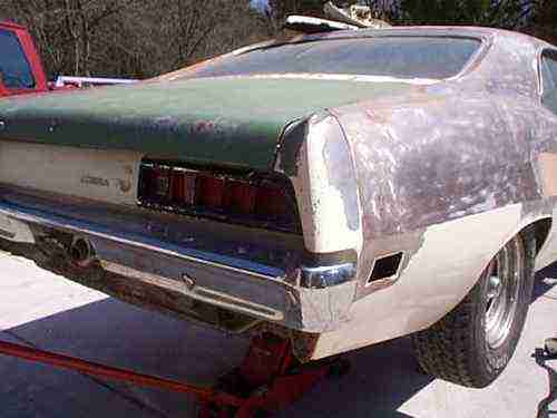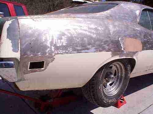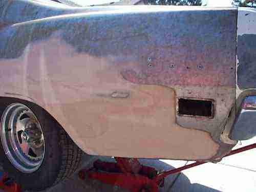 BODY TUB IS INTACT, STRUCTURALLY SOUND, RESTORABLE AND IS THE ORIGINAL BODY. THE RIGHT TORQUE BOX HAS A HOLE IN THE BOTTOM BUT SHOULD BE AN EASY FIX. THE TRANNY HUMP HAS A BIG HOLE CUT IT IN IT BUT I AM INCLUDING A NICE FLOOR PAN PIECE TO PATCH IT. ALSO LEFT REAR FLOOR PAN HAS A PIECE OF METAL PARTIALLY WELDED IN. HAVE DONOR USED FLOOR PAN FOR THIS PIECE. THERE IS A PATCH ON LEFT REAR FLOOR IN FRONT OF REAR WHEEL TUB BY SPRING PERCH (SEE PHOTO). ROOF AND QUARTERS ARE STRIPPED, STILL BARE METAL WITH SOME LIGHT SURFACE RUST. FRONT STRUCTURE IS SOLID WITH TYPICAL RUST UNDER BATTERY TRAY. RIGHT WHEEL WELL IS MOSTLY METAL, LOWER 8" IN FRONT OF TIRE HAS BLISTERS (MIGHT BE FILLER). INNER AND OUTER WHEEL TUB IS SOLID AND BEHIND TIRE HAS RUST, ALSO LOWER INNER QUARTER HAS RUST (SEE PHOTO). LEFT SIDE REAR QUARTER HAS SKIM COAT OF BODY FILLER. IT APPEARS TO HAVE LOTS OF METAL IN WHEEL WELLS. OUTER WHEEL TUB HAS SOME PATCHES. SEE TRUNK PHOTOS. HOOD IS CLEAN AND IS NOT BOWED. CLEAN TRUNK LID. PASSENGER DOOR CLEAN AND STRAIGHT. DRIVER'S DOOR HAS SOME RUST BUBBLES AND KINK ON FRONT BOTTOM (SEE PHOTO). THE UNDERSIDE LOOKS WORSE IN THE PHOTOS THAN IT ACTUALLY IS. THERE IS SCALY SURFACE RUST THAT LOOKS LIKE IT SHOULD SANDBLAST OFF. THE FRAME RAILS ARE REALLY SOLID.