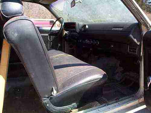 INTERIOR IS VERY USABLE. IT NEED A GOOD CLEANING. SEATS ARE NOT RIPPED UP, DOOR PANELS ARE NICE AND HEADLINER IS NICE. DASH PAD HAS A TACH CUT INTO IT. THE LOWER METAL DASH HAS FOUR GUAGES IN IT.