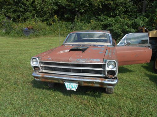 66 Fairlane has 89,xxx actual miles, clear title. Had a 390 4 speed in it years ago. The clutch peddle are still in it. Has 2 small bucket seats and 2 new fiberglass finders, very nice made I believe. They are crites has a factory ford hood scoop. The floors are not to bad, Torque box not bad trunk has some rust like all do, rear frame rails has rust at the back of them, not bad to fix. Not sure what engine it came with. the finders cost 500 a pair. Under the hood looks good. Front frame looks good also. Have a top loader 4 speed and the 390 bellhousing. Trans looks very good inside of it.