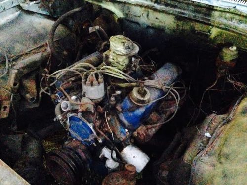 I took this car in today and while it is a rusty, non running hunk of American history I am not willing to jump off into such a large project. I have a bill of sale and guarantee it not to run in its current state. If you need additional pics call me and I will do my best to take care of that asap. It has a complete engine which I assume to be a 289 as it has a 6 bolt bellhousing and the firing order on the manifold is 15426378. |