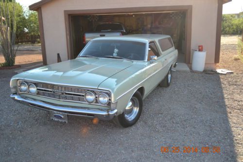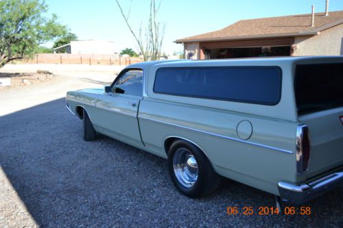 This 1968 Ford Ranchero has been fully customized and is ready for car shows or simply to bring back your youth. Brand new original factory green paint but with ghost flames added, power brakes, power steering, air conditioning, and the engine has been fully rebuilt, upgraded and has less than 2200 miles on the rebuild. The engine is the original 390 and bored 30 over and has 396 HP at this time. C6 Transmission with a positrac rear end added. Air shocks are fully controllable from the interior of the vehicle to suit your wants and needs. All chrome on the vehicle has been recently dipped for a bright and clean appearance. The interior has been redone in black leather and also has carpet installed in the bed of the vehicle. We are the second owners but have had the vehicle for 40+ years and this is an original West Coast vehicle and has been garaged 100% of the time short of a few drives to show it off from time to time. Basically this car has too much to list but we would be happy to give more details to the serious buyer. The pictures added will tell you just how much pride and care we have given this vehicle!