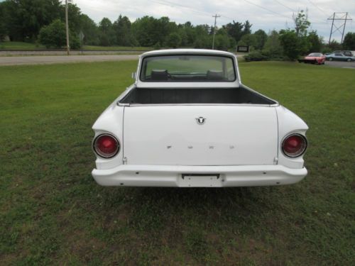 Hello, for sale is a northwest ranchero built in Calif, sweet little truck with an upgraded 65 200 six backed up by a Dagenham four speed, fun to drive and economical too. never a rusty car, has "recarro" type buckets with falcon center console, deluxe model with chrome around door windows and box, chrome rims and great tires, not much to do but drive and enjoy. buyer sets up and pays for shipping, payment cash in person at pick up, or bank to bank wire transfer. car doesn't leave till all funds clear good luck on bidding,