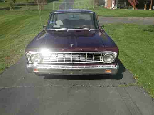 You are bidding on a 1964 Ford Falcon. This is a super nice little car. 289 with a 4 speed runs and drives great.I am not a Ford guy so I am unsure if this was a V8 car orgianlly. This car has new Flow Masters,BFG tires and all new interior.This car was painted about 10 years ago so I would say the paint now is just driver quality. This car only has one small spot of rust in the quarter pannel as you can see from the pictures. This floor pans are very solid and have been repaired in one spot. The trunk is in excellent shape. The bumpers need to be replace as they have some surface rust on them. This car would make an awesome little cruze in machine or driver. With some paint and bumpers you would have a show car. Please call with questions 630-675-5193.