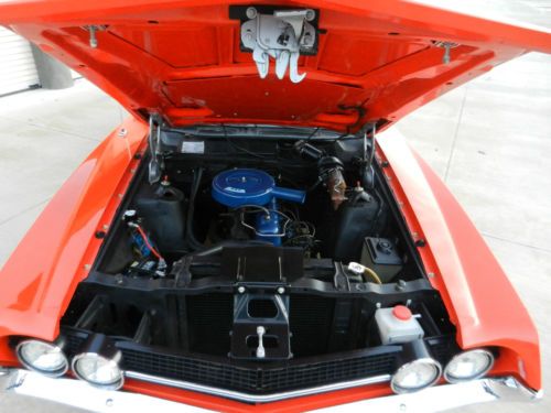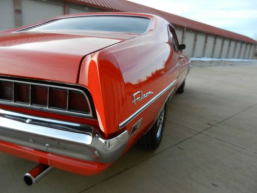 RESTORED SUPER NICE AND RARE 1970 1/2 FORD FALCON WITH FACTORY CALYPSO CORAL ORANGE PAINT. SHAKER HOOD HAS BEEN ADDED(FOR LOOKS NOT FUNCTIONAL) AS WELL AS A FACTORY HOOD TACHOMETER WHICH WORKS GREAT. THE CAR HAS BEEN A SOUTHERN CAR ITS WHOLE LIFE ORIGINALLY OUT OF TENNESSEE. BODY IS IN EXCELLENT SHAPE WITH VERY MINIMAL RUST OR RUST REPAIR. THIS CAR WAS RESTORED ABOUT 5-6 YEARS AGO AND WAS THEN PUT INTO A PRIVATE COLLECTION IN DALLAS TX WHERE I BOUGHT IT FROM ABOUT 2 YEARS AGO. SINCE THEN I HAVE JUST SHOWED IT AT LOCAL SHOWS AND DRIVEN IT ON NICE DAYS. ALWAYS KEPT IN THE GARAGE.