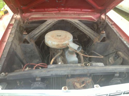 Please see photos. Also, 289 engine, c-4 auto trans, 5 lug 8in rear end, driveshaft on a pallet. Piles in the V-8 are a completely rebuilt with new bushing, bearings, seals, ball joints, sway bar, for a v-8 front end parts. The Blue V8 car is solid except for a small amount of rust in the quarter panels and floor pans. This is the car I would build. The red c cyl car is pretty rusty. I would just use it for the interior and convertible parts. I also have the quarterpanel trim and other tail lights in my shop. I have had both cars for 15 years in a shed. The spare 289 nd trand were running when I removed them from a mustang. The spare engine is complete from carb to oil pan with manifolds, plug wires, etc. It is still bolted to the c-4 auto trans. I have tried to take a picture of everything. I want you to know the blue V8 is very solid with no rust in the fenders and doors. It is a good builder except for the floorpans. I have keys and clear titles for both cars.