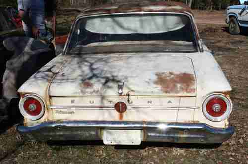 I believe this is a 1963 or 1965 ford falcon, all original. Has motor in car and transmission. Was just parked.Body looks pretty good. I also have another falcon that i believe is either a 1963 or 1965. Will sell both or seperate. Sold as is. Serious bidder's only please. You will be responsible for pick-up. Any questions please call me at. 479-970-5056. I am not sure of the year, maybe you can help identify the year.