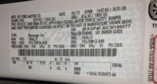 - White 2012 Ford Fiesta SES - 4 doors plus hatchback - Actual average miles per gallon has never gone below 32mpg (for mix of city and highway driving, 3:4 ratio) - 37,083 miles - Smoke-free environment - Alloy wheels - Automatic shifting - Power locks/windows - Microsoft SYNC (connect your phone with Bluetooth to place calls, request songs, and send a Glympse with voice commands; also compatible with a growing number of iPhone apps) - Sirius radio enabled - Green track lighting in cup holders and under dash - Recent CarFax available (Aug 2013): no damage or accidents, and up-to-date on servicing and fluid checks - Recently bought used (Aug 2013) but will be moving to Cambridge, MA and will not need another car for commuting - Prefer to meet in person for the sale |