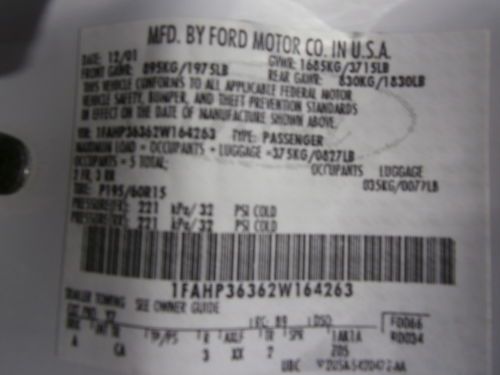 UP FOR AUCTION IS MY 2002 FORD FOCUS SE. 4CYL AUTOMATIC WAGON. I AM THE SECOND OWNER AND HAVE OWNED THIS FOR THE LAST 7 YEARS. ORIGINAL 166705 MILES. CAR RUNS GREAT. OIL CHANGED EVERY 3K MILES. AC IS NOT WORKING FOR UNKNOWN REASON. CAR SHOWS NORMAL DINGS & SCRATCHES. SOME PAINT FLAKING ON REAR HATCH. INTERIOR IS IN GOOD SHAPE AND CLEAN. DRIVERS SIDE HAS A COUPLE SMALL BURN MARKS. TIRES ARE APROX 50%. I HAVE CURRENT OREGON REGISTRATION, TAGS GOOD UNTIL JULY 24TH 2014. OREGON PRICE IS $86.00 FOR 2 YEARS. PLEASE ASK ANY AND ALL QUESTIONS. I DO MY BEST TO DESCRIBE THIS VEHICLE. THIS IS A USED CAR THAT IS 12 YEARS OLD WITH 166,705 ORIGINAL MILES. NO WARRANTY IS OFFERED AND "CAR IS SOLD AS IS" |