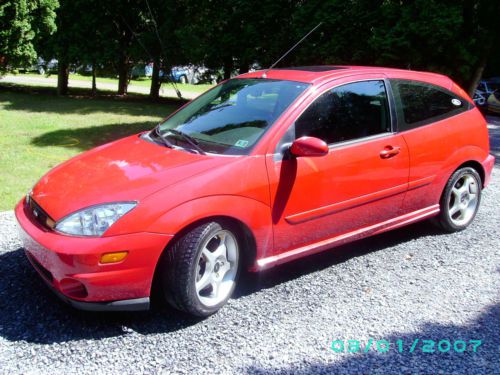 Up for sale is my 2003 Ford Focus SVT (3-door.) It has just over 99,445K(still use it as my "weekend driver" so mileage might be slightly higher just to keep in mind.) It has been maintained by the local ford dealer and the oil was changed every 3000 miles. Has many new parts including rotors, brake pads, tires, and the Ignition tumblers replaced(common and costly Focus repair that seemed to plague the 2000-04 Focus's.) The car is in great shape and is currently used as my "2nd/backup" car. The car is powered by the 2.0L DOHC 170hp engine and has a 6 speed manual transmission. It is red with red/black interior and is fully loaded. Has the optional "cold weather package", moon roof, power everything, ect . I just recently purchased and installed a brand new pare of EURO/HID Headlights which makes the car look amazing compared to what it originally came with. It really is a well kept, documented and cared for 2-door SVT Focus. Was NEVER raced, beat on, smoked in at all. I am the 2nd owner and do have lots of paperwork (receipts ect) that goes with the car. For 2003 with this color and interior combo Ford has online that it is 1 or 1010 made. You will NOT be disappointed. I'm asking $6000 but am open to offers. Clear PA title in hand. Any questions please feel free to email or call 570 -778- 10 79. Thank You! ***Just wanted to add that on some of the dates on the bottom of the pictures are completely wrong. I just took them this afternoon(8/5) so they are current. Also as you can tell I had EURO HID headlights installed. This really is a well kept and rust free SVT Focus which was mostly garage kept. Again, it does have some minor scratches but NOTHING major at all, you will NOT be disappointed. Always was adult driven and never "raced or beat on" like many are. I am the 2nd owner and purchased it 6 months ago(which was an older man who he let his middle aged daughter used until the family started to "out grow" the car.) Unfortunately, I have to let her go because I am fixing up this rental property and ran into a BIG problem with the house. Also I do have a factory Single Disc CD player instead of that aftermarket one(which works good) but just in-case you decide to install the factory one back. Pictures speak louder than words! Enjoy and Good Luck! Any questions please feel free to email or call/text my cell phone at 570-778-1079. Thanks for your interest! |