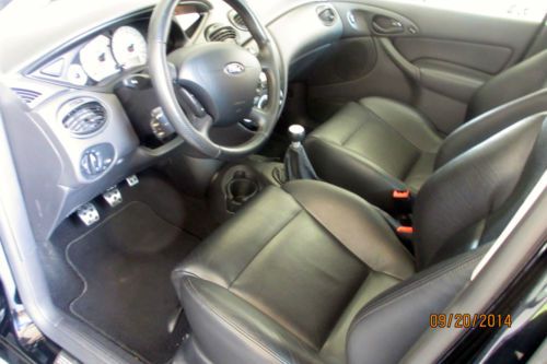 I am selling a very rare 2004 Ford SVT Focus ZX5, European Appearance Package (“EAP”), produced only in 2004 in the 4 door hatchback ("ZX5"). Only 408 were made (see below). It is black with black leather interior, has 103k miles, all original paperwork including window sticker, bill of sale, and all service records. A notebook full of service history comes with the car. Interior is immaculate, almost like new. Carpets are clean and no rips or tears anywhere. Trunk looks like it the car just came from factory. Prior owner never smoked. Exterior has normal wear and tear for car of its age, but very minor overall. There is mild curb rash on two wheels, but barely noticeable. Special features: 1. Notebook full of all receipts and services, including original bill of sale, thank you letters from Ford, Window Sticker, etc. 2. Has both remote key fobs in as new condition. One fob has never even been used. 3. Engine bay is clean and perfect. 4 Interior is near mint. Even aluminum SVT doorsills are in great shape. 5. Spare tire has never been used. Compartment is same as new. 6. Headlight lenses are as new—no hazing or discoloration. 7. Almost new (95+% tread life) Continental DWS all season tires, which are my favorite tires for this car. 8. Condition of seats are perfect. Passenger and rear seats appear as new. Driver seat almost as new. I purchased this car from the original owner, a physician who used it as his daily driver and kept meticulous records. It was always garaged--at home and at work. At my local dealership in July, I spent $2477 (parts and labor) putting the car in top shape: 1. Replaced spark plugs. 2. Serviced fuel induction and throttle body. 3. Replaced rear brake pads and calipers. 4. Replaced timing belt and water pump valve. 5. Replaced wiper relays. The car has almost new (95+% tread life) Continental DWS all season tires, which are my favorite tires for this car. For those of you not familiar with the European Appearance Package ("EAP"), it was available only in 2004 for the five door ZX5 model, and included heated black leather Recaro seats, audiophile audio system with 6 disc in-dash CD play, a 290 watt amplifier in the trunk, eight inch subwoofers, traction control, special 15 spoke argent wheels, power moon roof, and HID headlights. Only 408 SVT ZX5's with EAP were made, and only in 2004, and 110 were black. It is a rare, fantastic car. Reason for selling: I need to make space in my garage. This is one of the nicest SVT ZX5 EAP's on the planet. Car is located in Stanley, VA, 22851. Thank you.
