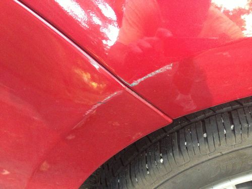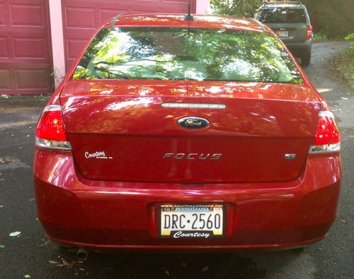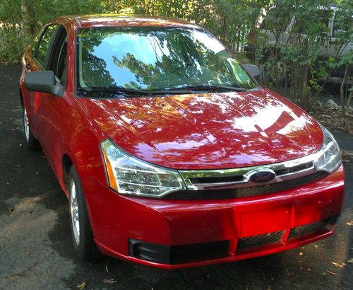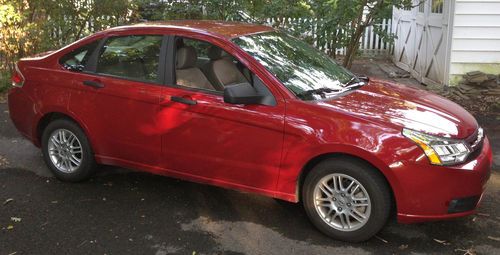 You are buying a 2010 Ford Focus SE with less than 24,000 miles. This car is red with grey cloth interior. The car was purchase new by my father in 2010 who recently passed away. The car was garage kept and received all scheduled maintenance. The car does have a minor scrape on the rear passenger's side...just above the tire. My father brushed the side of the garage while trying to back into the garage...please see photo...