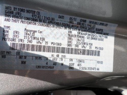 VIN (Vehicle Identification Number): 1FAHP3K22CL167158